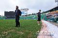 28일 오후 프로야구 두산과 LG의 경기를 앞둔 잠실구장에 두산 김민호 코치(오른쪽)와 구장 관리인이 그라운드 상태를 살피고 있다. 잠실야구장은 지난 폭우로 많은 양의 그라운드 흙이 유실돼 보수 공사를 하고 있다.잠실=김경민 기자 kyungmin@sportschosun.com
